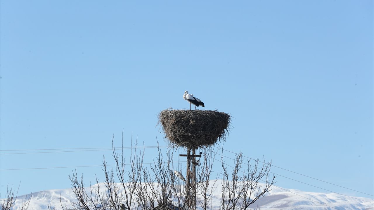 ERZİNCAN (AA) - Erzincan'daki Binkoç köyünün Ada mezrasında yuva yapan ve sıcak diyarlara göç etmeyen iki çift leylek, yıllardır kış mevsimini de köylülerle geçiriyor.