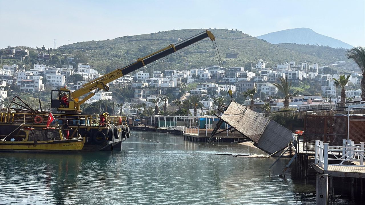 Kaymakamlık koordinesinde, Bodrum Belediyesi, Bodrum Bölge Liman Başkanlığı ve Bodrum Milli Emlak Müdürlüğü ekipleri, Türkbükü sahilinde kıyı kanununa aykırı inşa edilen ve mahkemece yıkım kararı verilen kaçak iskeleler ile yapıların yıkımı için harekete geçti.