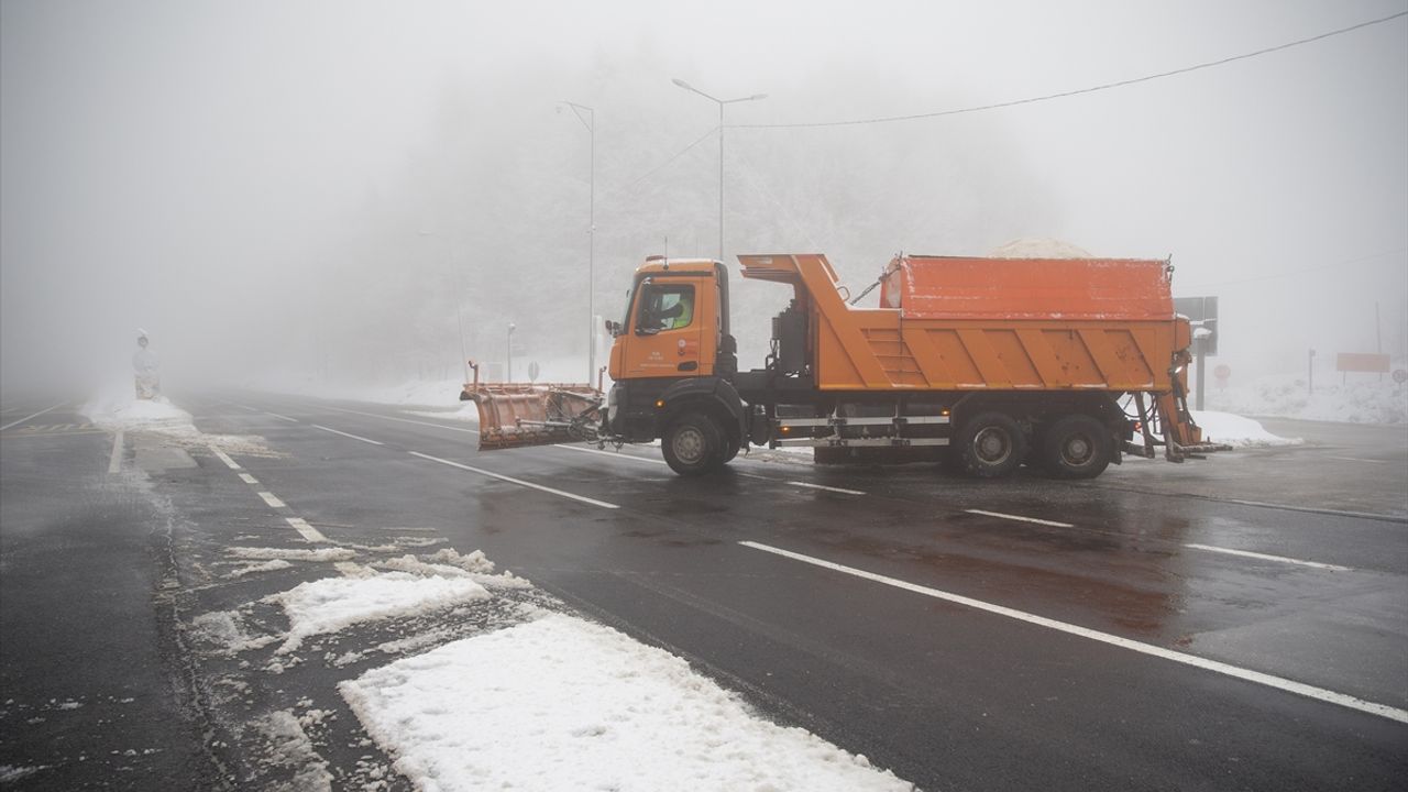 Öte yandan hava sıcaklığının sıfırın altında olduğu bölgede yolda buzlanma olmaması için kara yolları ekiplerince tuzlama çalışması yürütüldü.