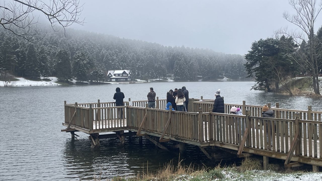Bolu kent merkezine yaklaşık 13 kilometre uzaklıkta bulunan Gölcük Tabiat Parkı, kar yağışının ardından beyaza büründü.