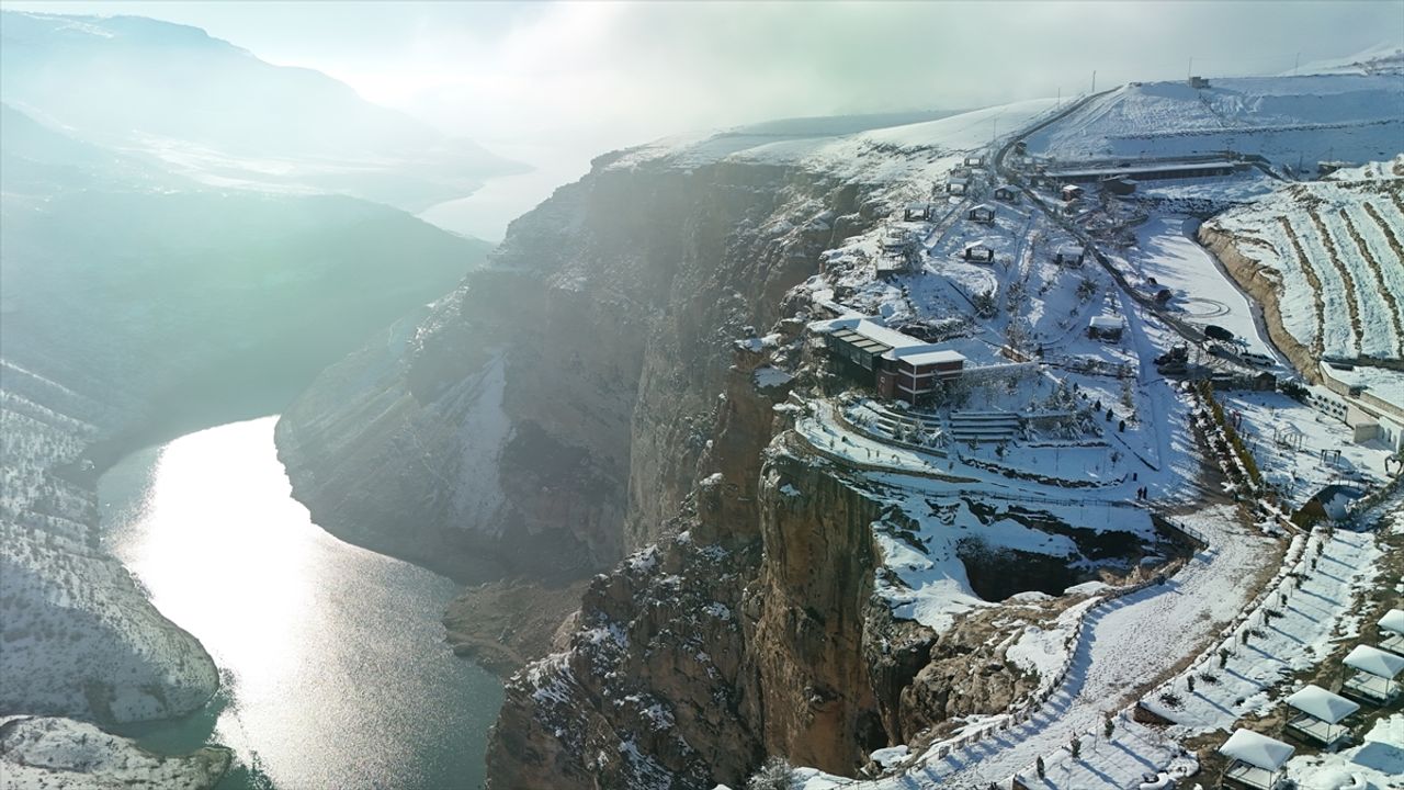SİİRT (AA) - Siirt'te etkili olan kar yağışının ardından beyaza bürünen Botan Vadisi Milli Parkı, dronla görüntülendi.