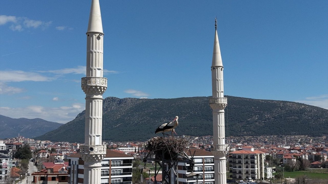BURDUR (AA) - Burdur'un Bucak ilçesine gelen leylekler, 30 yıldır aynı elektrik direğinde konaklıyor.