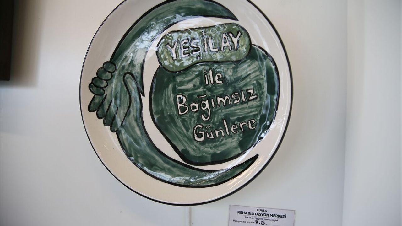 BURSA (AA) - Bursa Yeşilay Rehabilitasyon Merkezi ve Bursa Yeşilay Danışmanlık Merkezi (YEDAM) danışanları ile personelinin eserlerinden oluşan 'Kil ve Tuval Umutla Hayal' adlı üçüncü karma sanat sergisinin açılışı yapıldı.