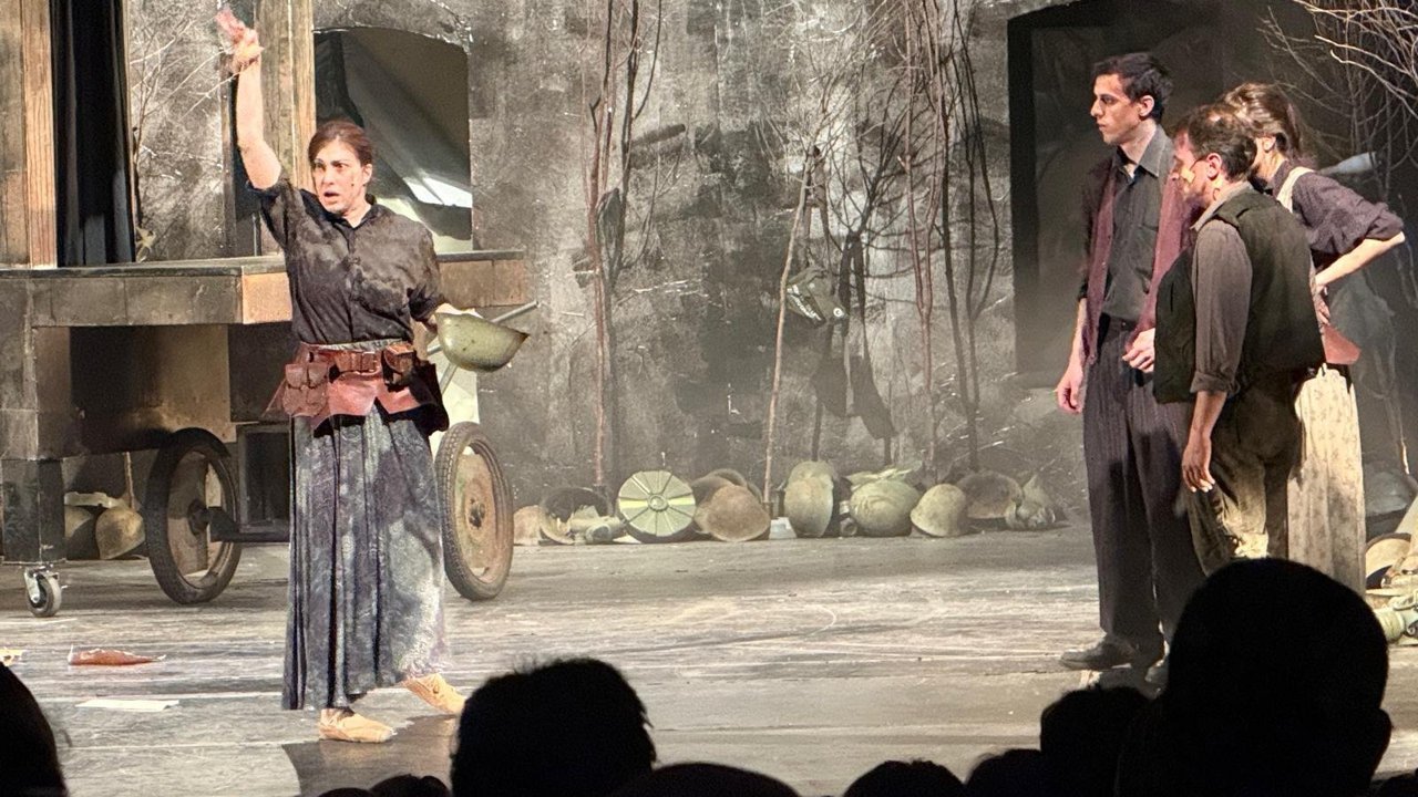 BURSA (AA) - Kültür ve Turizm Bakanlığı bünyesinde Devlet Tiyatroları Genel Müdürlüğünce düzenlenen Bursa 13. Uluslararası Balkan Ülkeleri Tiyatro Festivali kapsamında Sırbistan'dan 'Cesaret Ana ve Çocukları' oyunu sahnelendi.