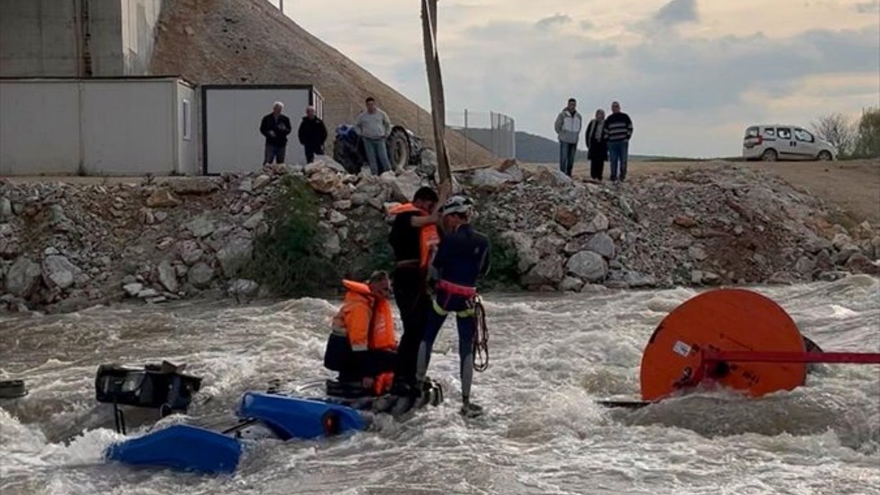 Bölgeye giden ekipler, vinç yardımıyla işçileri dereden çıkarıp güvenli alana taşıdı.