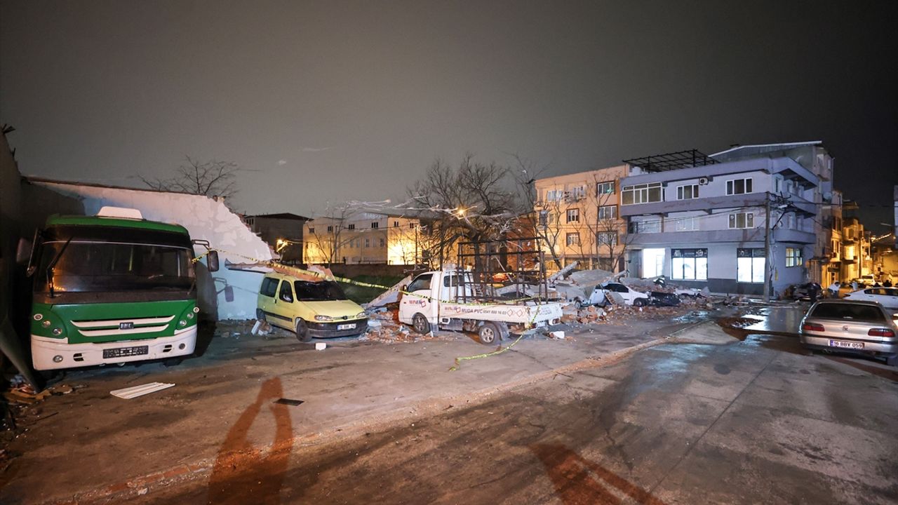 Duvar kenarında park halinde bulunan otomobil, minibüs ve pikap türü 10 araç molozların altında kaldı.