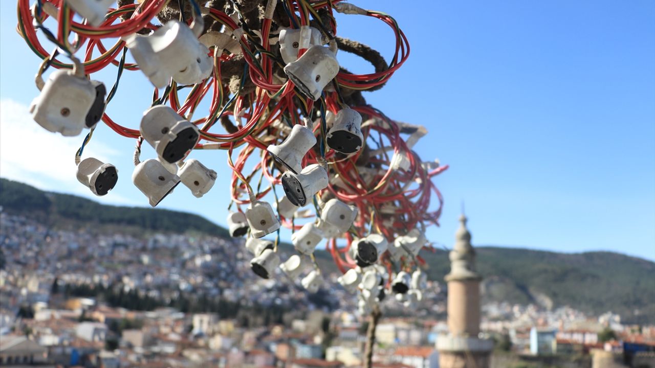 BURSA (AA) - Bursa'daki tarihi Ulu Cami'nin minareleri arasına 'Kul hakkından sakın' yazılı mahyanın asılmasına başlandı.