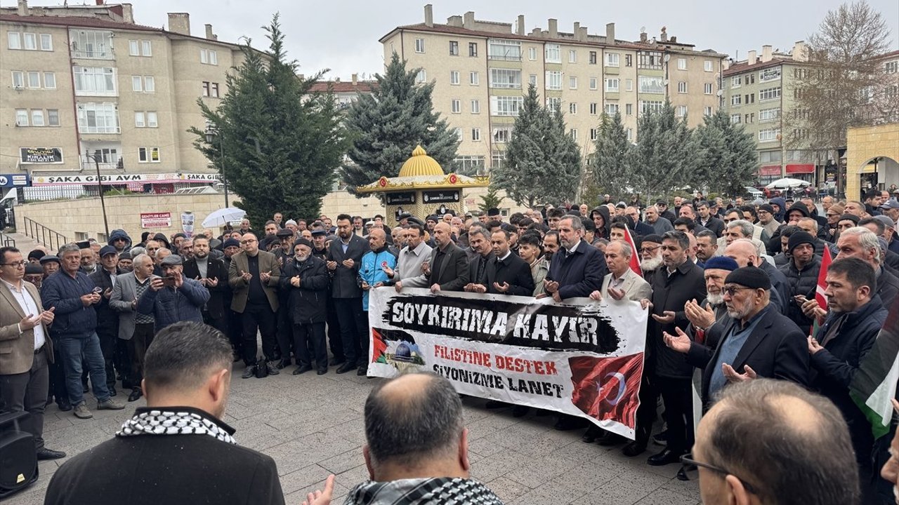 Çankırı Eğitime Destek Platformu tarafından cuma namazı sonrası Ahmet Yesevi Camisi bahçesinde bir araya gelen vatandaşlar, İsrail aleyhinde slogan attı.