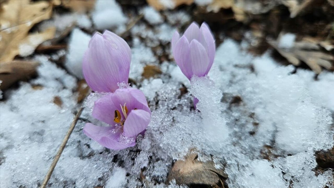 Çankırı'nın Yapraklı ilçesinde, karların erimesiyle araziler, katır çiğdemi veya bilimsel adıyla Colchicum szovitsii olarak da bilinen kar çiçekleriyle renklendi.