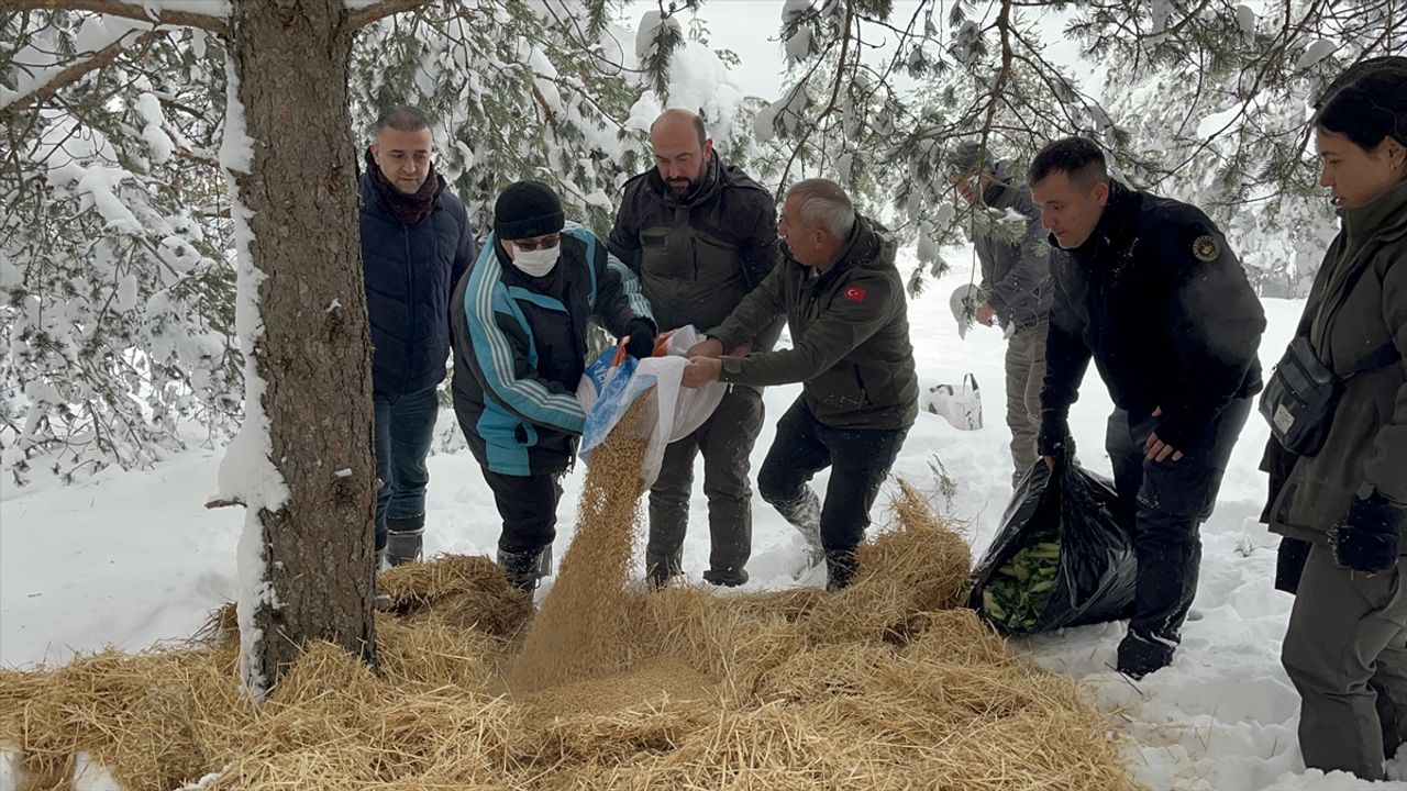 Ekiplerce belirlenen noktalara saman, buğday ve pazar artıkları bırakılarak yiyecek bulmakta zorlanan yaban hayvanlarının beslenmesi sağlandı.