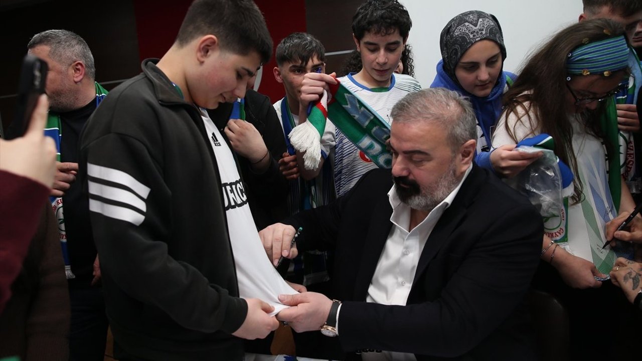 RİZE (AA) - Trendyol Süper Lig ekiplerinden Çaykur Rizespor'un kulüp başkanı İbrahim Turgut, teknik direktör Recep Uçar ile futbolcular Mithat Pala ve Samet Akaydin, lise öğrencileriyle bir araya geldi.