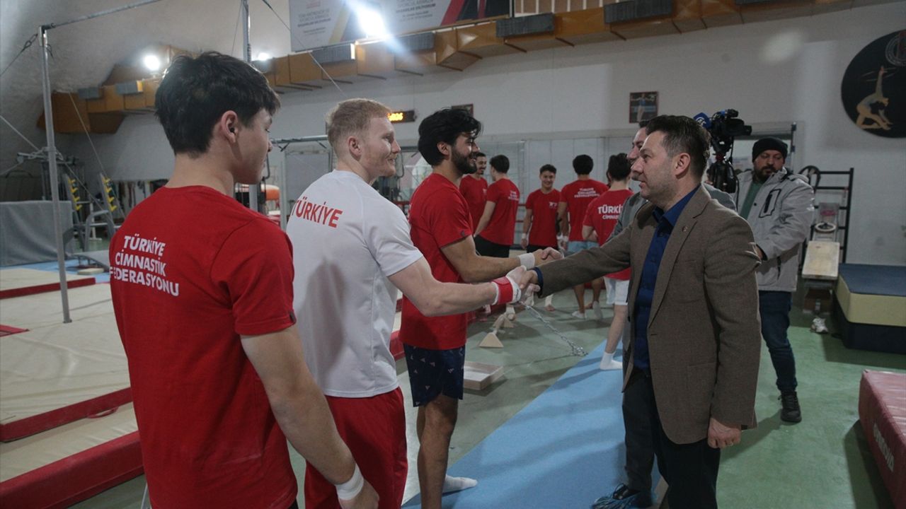 Bolu'da kamp yapan Artistik Cimnastik Erkek Milli Takımı'nı ziyaret eden Çelen, Gençlik ve Spor İl Müdürü Emrullah Güler ile Karaçayır Mahallesi'nde bulunan Murat Canbaş Cimnastik Salonu'ndaki kamp çalışmalarını yerinde inceledi.