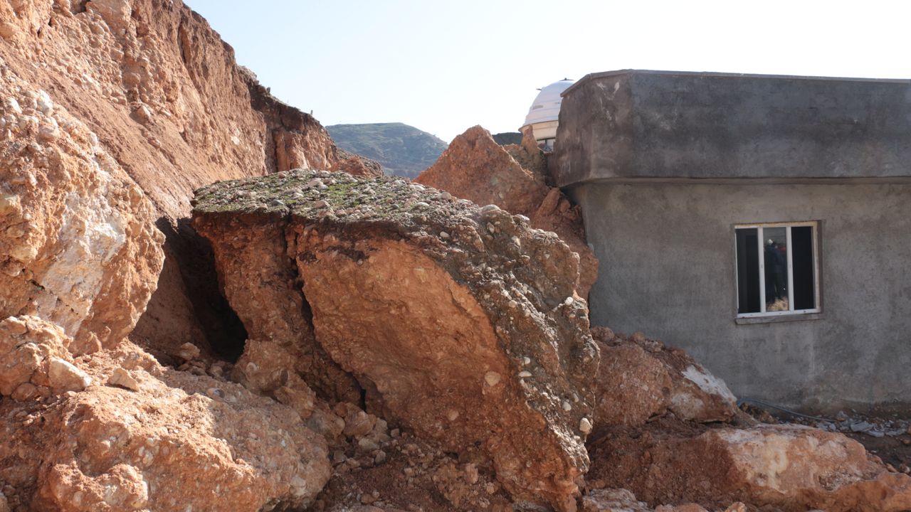 Yamaçtan kopan kaya parçaları ile toprak kütlesinin müstakil bir evin üzerine düşmesi sonucu evin bir bölümünde hasar oluştu.