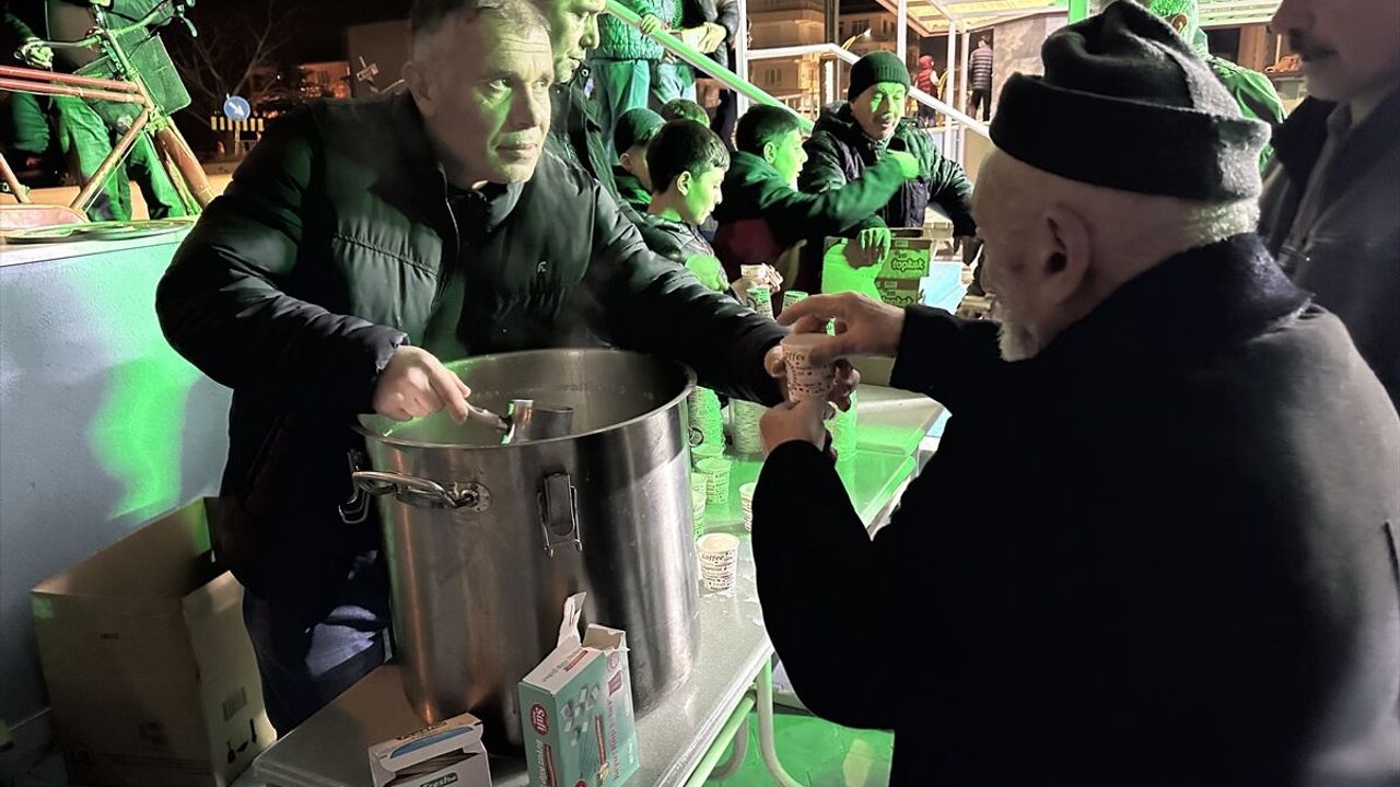 Kadir Gecesi'nin insanlığa hayırlar getirmesini temenni eden Olgun, 'Bugün sağdığımız sütleri geçmişlerimizin ruhu için, Allah rızası için vatandaşlarımıza ikram ediyoruz.' dedi.