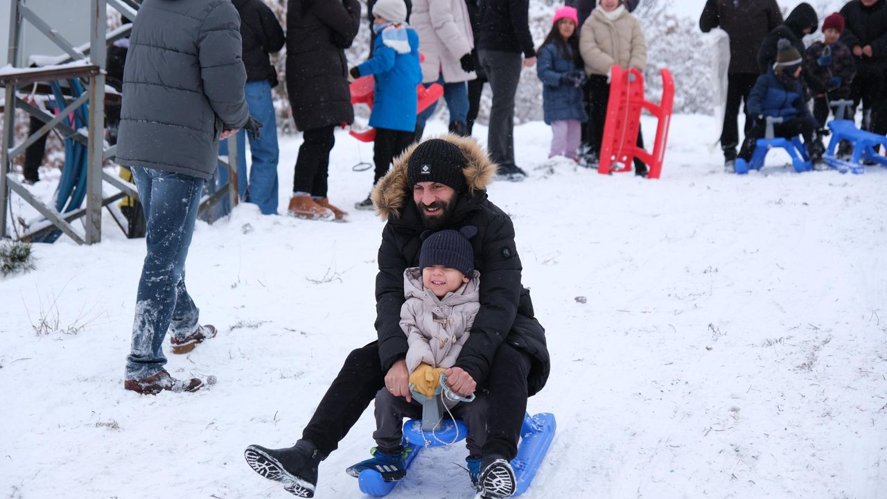 Belediyeye ait araçlarla Hürriyet Meydanı'ndan kamp alanına taşınan vatandaşlar, burada kartopu oynadı, kızaklarla kaydı.