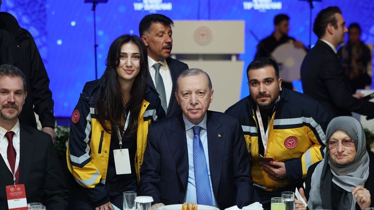 Ramazan ayının son günlerinin idrak edildiğine değinen Erdoğan, 'Mübarek Ramazan-ı Şerifinizi ayrı ayrı tebrik ediyorum. Sizlerin şahsında şu anda yani iftar vaktinde bile görevinin başında olan, yaşatmayı, iyileştirmeyi, yaralara merhem olmayı hayatının merkezine alan sağlık camiamızın tüm mensuplarına buradan şükranlarımı ve muhabbetlerimi iletiyorum. Aynı şekilde yine buradaki kardeşlerimle birlikte 81 ilimizdeki tüm hekimlerimizin, hemşirelerimizin, hasta bakıcılarımızın, sağlık ordumuzun her bir mensubunun 14 Mart Tıp Bayramı'nı yürekten kutluyor, emekleri ve gayretleri için kendilerine şahsım ve milletim adına teşekkür ediyorum.' ifadelerini kullandı.