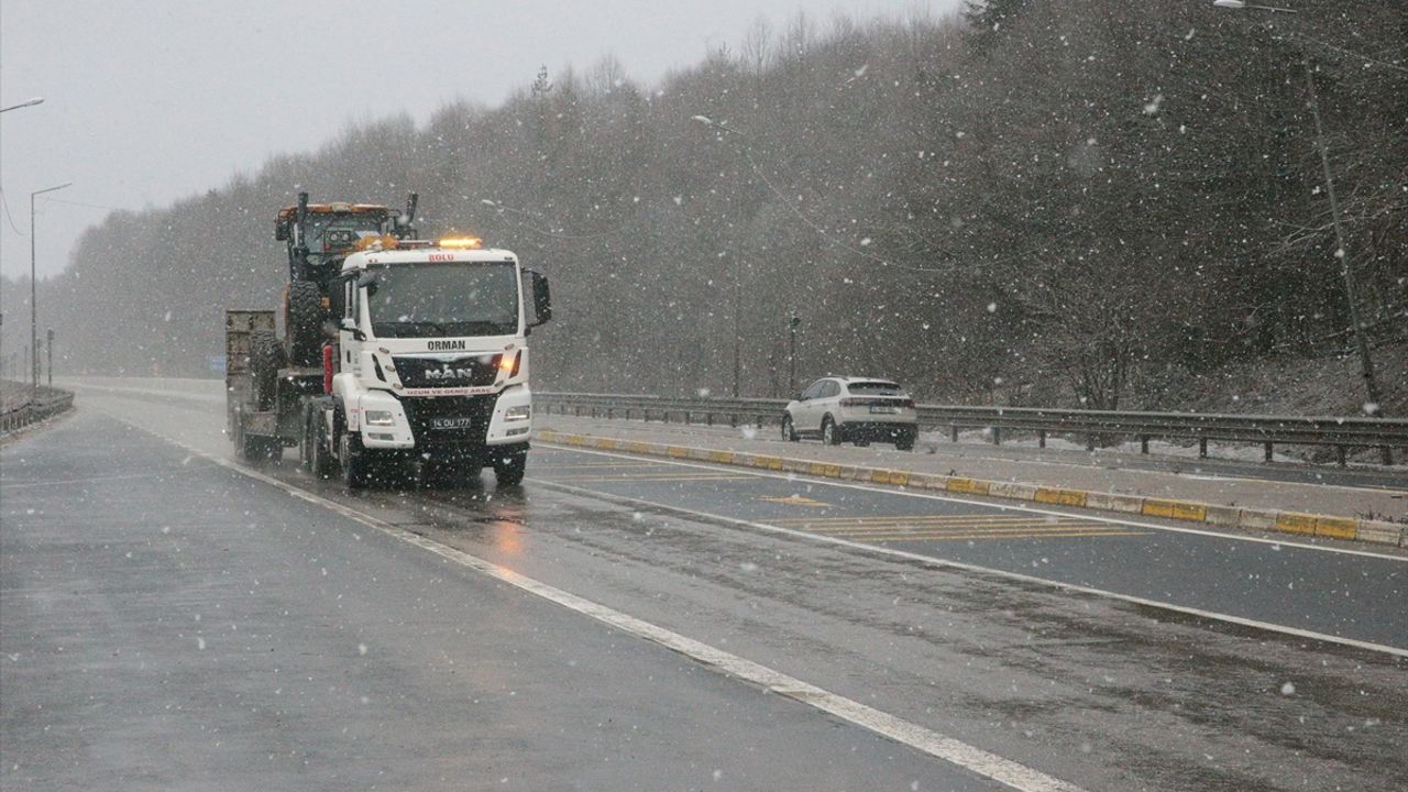 Kar yağışı, kara yolunun Abant Kavşağı, Bakacak, Karanlıkdere ve Seymenler mevkilerinde etkili oluyor.
