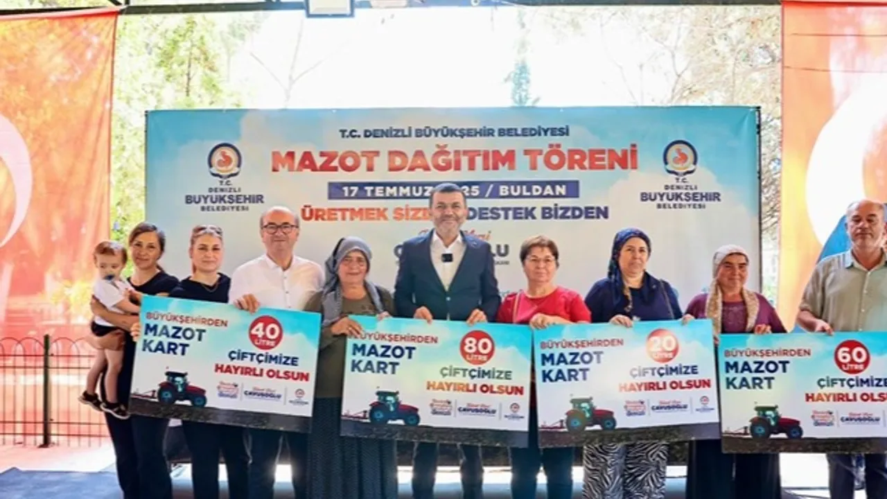 Denizli Büyükşehir Belediyesi, üreticilerin girdi maliyetlerini azaltmak ve tarımsal üretimi desteklemek amacıyla çiftçilere yönelik mazot desteğini sürdürüyor. Bu kapsamda Buldan ilçesinde düzenlenen törende 432 üreticiye toplam 25 bin 200 litre mazot desteği verildi.DENİZLİ (İGFA) - Törene Denizli Büyükşehir Belediye Başkanı Bülent Nuri Çavuşoğlu’nun yanı sıra Buldan Belediye Başkanı Mehmet Ali Orpak, Denizli Büyükşehir Belediyesi Kırsal Hizmetler Dairesi Başkanı Yücel Arazsu ve çok sayıda üretici katıldı.