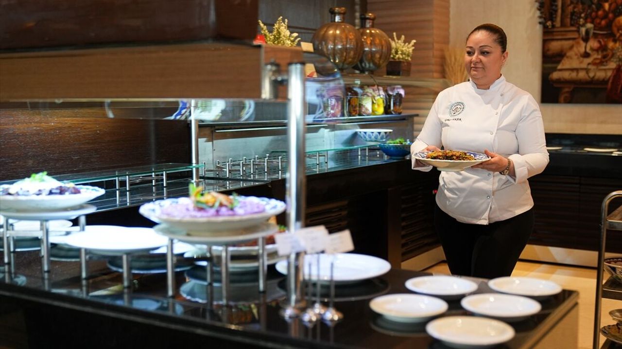 İZMİR (AA) - HAYDAR TOPRAKÇI - Kahramanmaraş merkezli 6 Şubat 2023'te meydana gelen depremlerden etkilenen Hatay'da iş yeri yıkılan şef Gökçe Eker, İzmir'deki bir otelde yöresel lezzetleri iftar menüsünde müşterilere sunuyor.