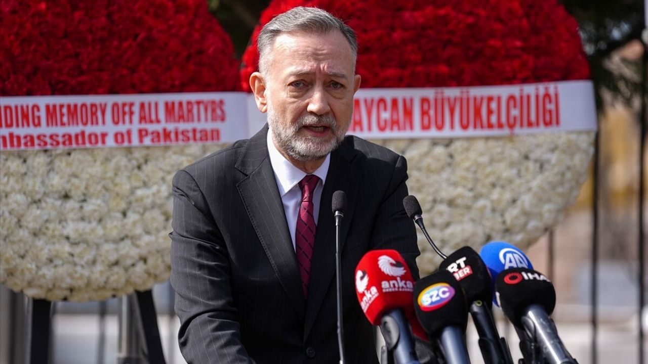 Katılımcılara teşekkür eden Dışişleri Bakan Yardımcısı Büyükelçi Gümrükçü, 'Bu duygu ve düşüncelerle aziz şehitlerimizin hatıraları önünde bir defa daha saygıyla eğiliyor, kendilerine Allah'tan rahmet, yakınlarına sabırlar diliyorum. Şehitlerimizin ruhları şad, mekanları cennet olsun.' ifadesini kullandı.