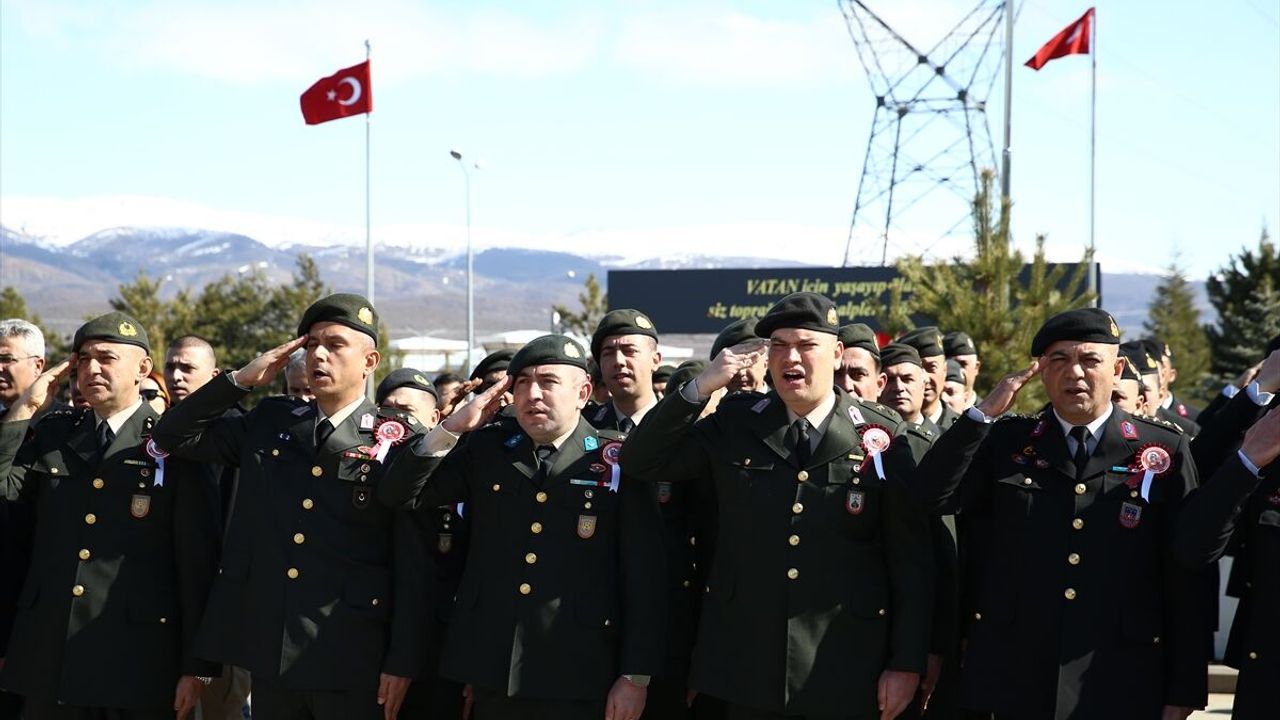 Elazığ Garnizon Şehitliği'nde düzenlenen tören, saygı duruşunda bulunulması ve İstiklal Marşı'nın okunmasıyla başladı.