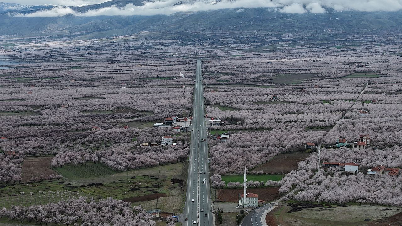 Malatya Ovası'nı beyaza bürüyen kayısı bahçelerinin arasında kalan yerleşim yerleri, açan kayısı çiçekleriyle adeta inci gerdanlıkla çevrelendi.