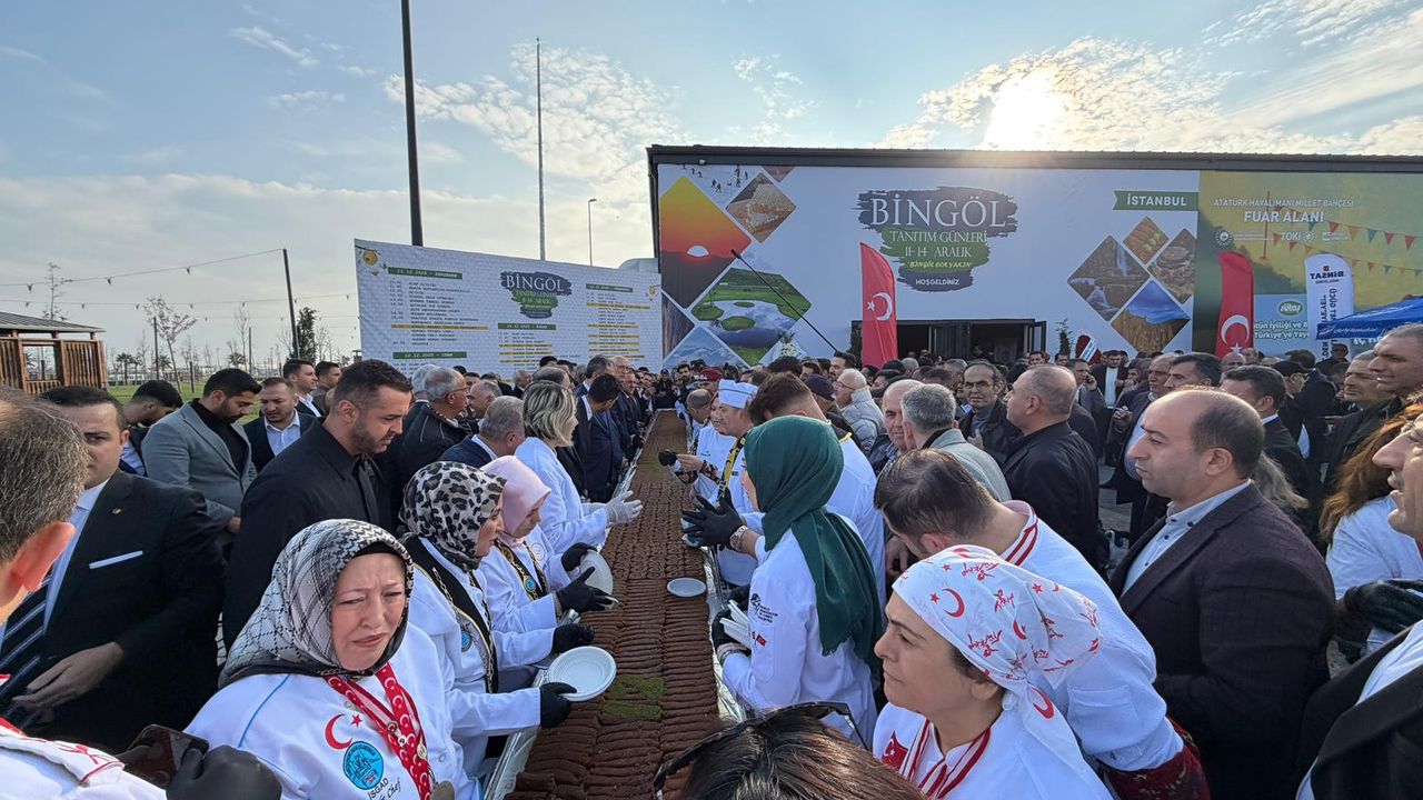 BİNGÖL (AA) - Bingöl Ticaret ve Sanayi Odası (BİNTSO), İstanbul Atatürk Havalimanı Millet Bahçesi Etkinlik Alanı'nda hazırlanan 12 metre uzunluğundaki burma kadayıf için Guinness Rekorlar Kitabı'na başvuru sürecini başlattı.