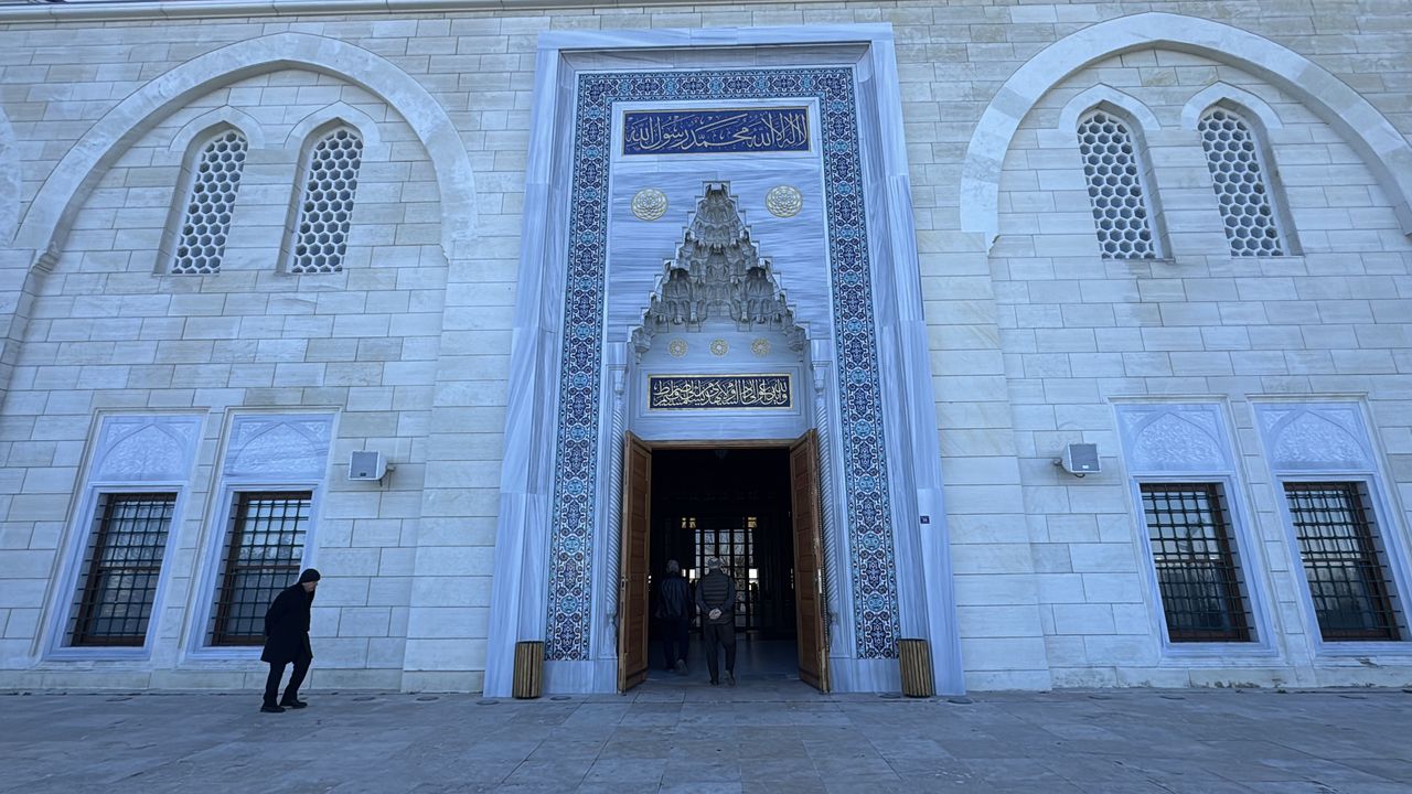 Çocukların da aralarında olduğu cemaatin bir kısmı camide yer bulamayınca avluya serilen kilimlerin üzerinde namaz kıldı.