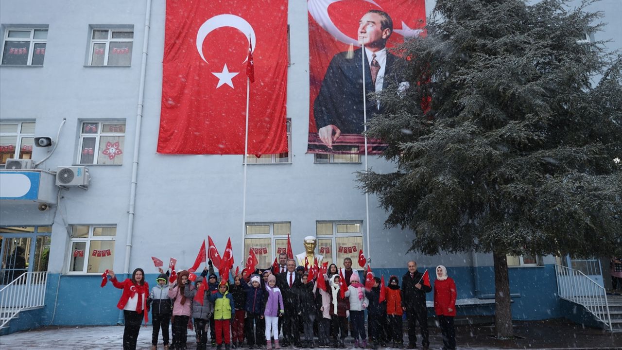 75. Yıl İlkokulu'ndaki öğrenciler, tatilin ardından ilk derslerine 'Bayrak Sevgisi' temasıyla başladı.