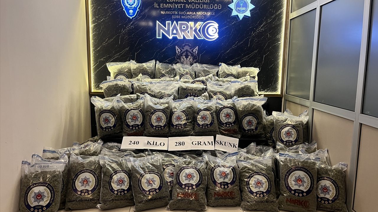 ANKARA (AA) - İçişleri Bakanı Ali Yerlikaya, Edirne'de düzenlenen operasyonda 240 kilogram skunk uyuşturucu maddesinin ele geçirildiğini duyurdu.