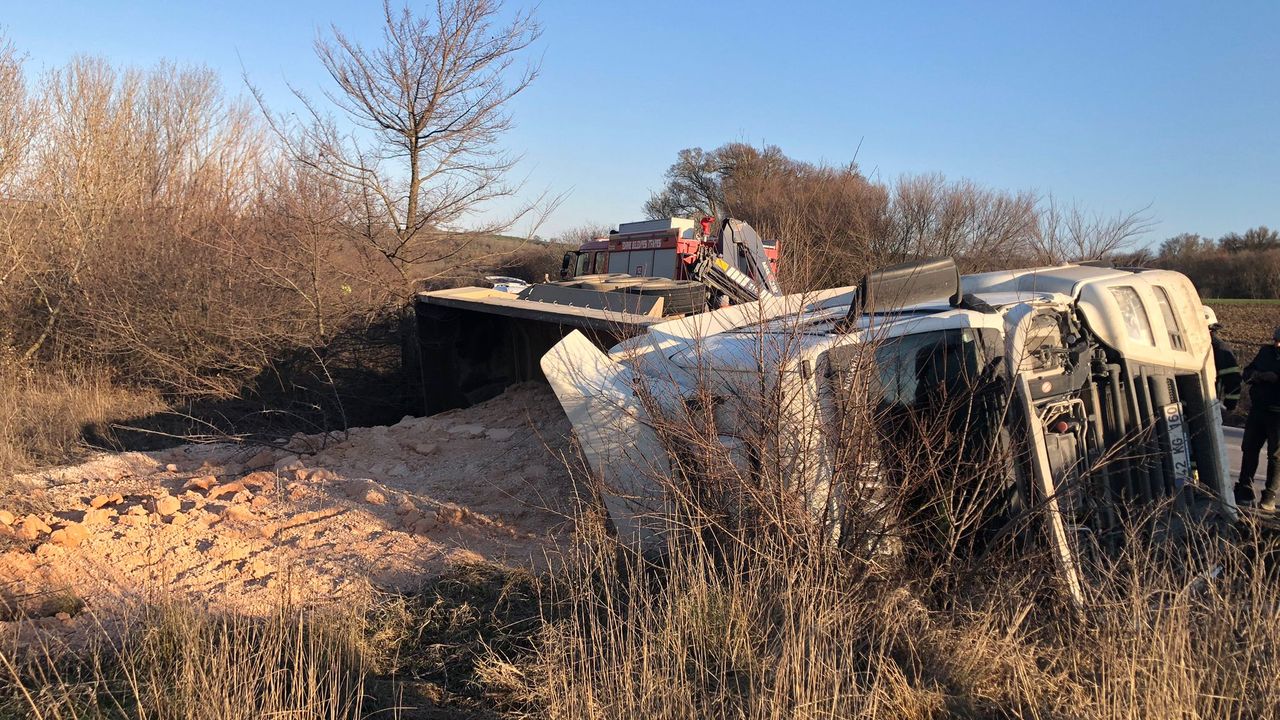 K.Ş. idaresindeki 42 KG 160 plakalı tır, Edirne-Lalapaşa kara yolunda, sürücüsünün direksiyon hakimiyetini kaybetmesi sonucu devrildi.