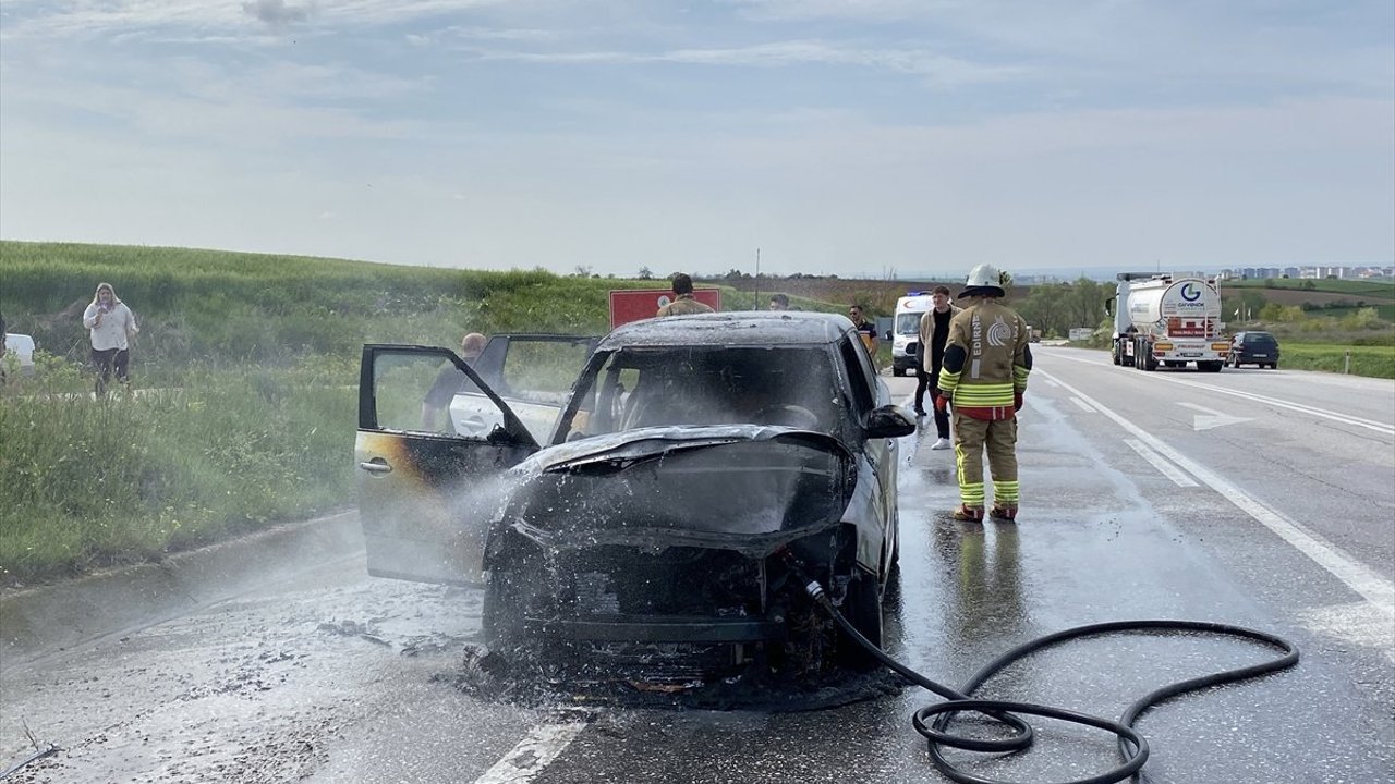 EDİRNE (AA) - Edirne'de seyir halindeyken alev alan otomobil kullanılamaz hale geldi.