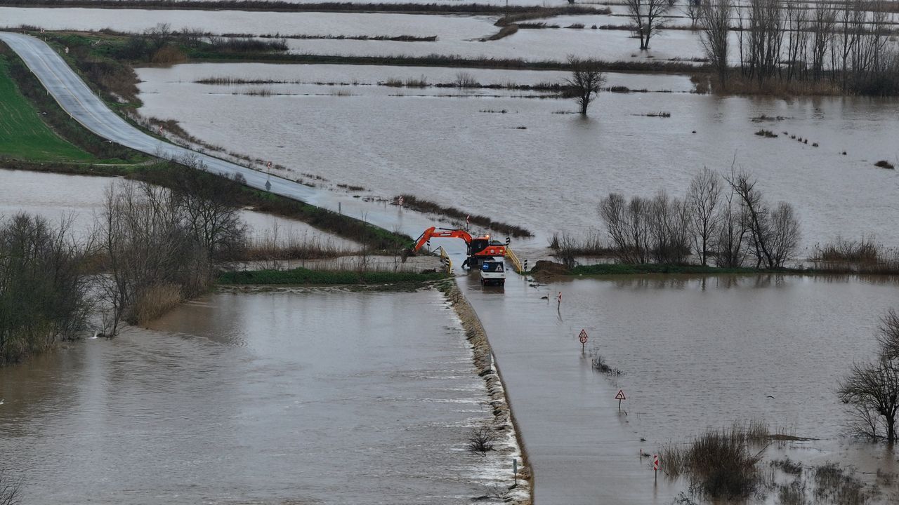 EDİRNE (AA) - Edirne'de yağışların ardından meydana gelen taşkın nedeniyle köy yolu trafiğe kapandı.