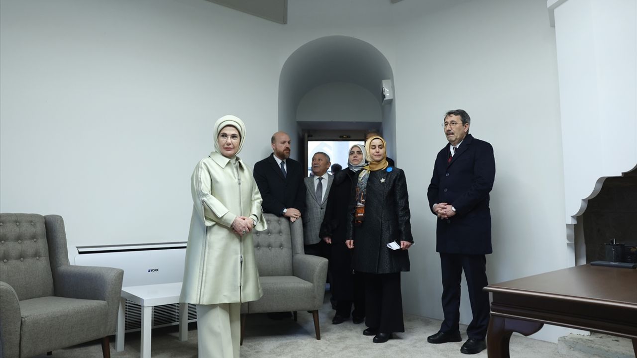 Emine Erdoğan, açılışın ardından tarihçi ve akademisyen Vehbi Baysan ile İPAM Müdürü Burcu Uysal'ın rehberliğinde merkezin psikoterapi odalarını ve dersliklerini gezdi.