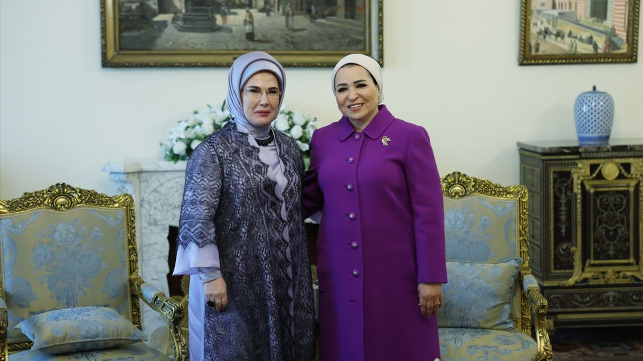 Mısır'a resmi ziyarette bulunan Cumhurbaşkanı Recep Tayyip Erdoğan'a eşlik eden Emine Erdoğan, Al-İttihadiye Sarayı'nda, Entissar Amer ile ikili görüşme gerçekleştirdi.