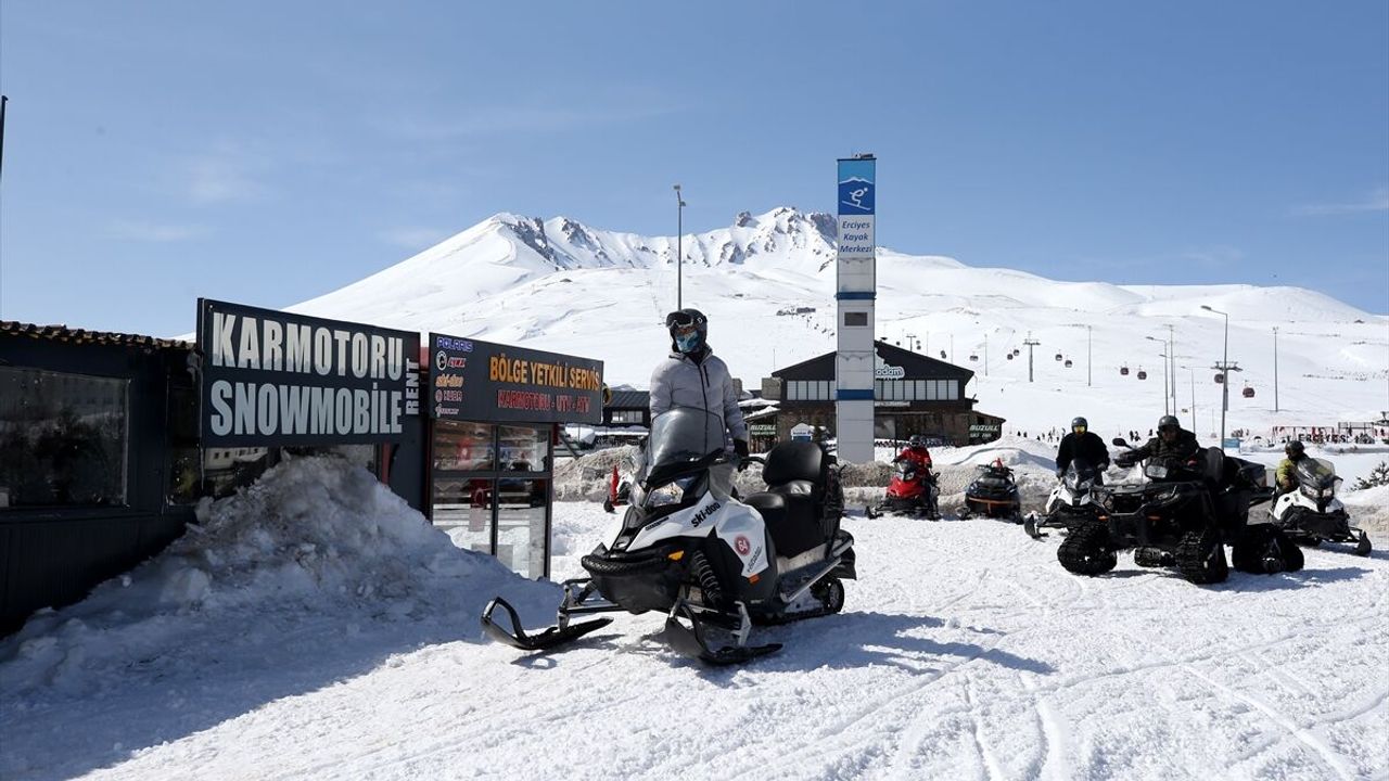 KAYSERİ (AA) - MÜZAHİM ZAHİD TÜZÜN - Türkiye'nin en önemli kış sporları ve turizm merkezlerinden Erciyes Dağı'na gelen ziyaretçiler, kar motorlarıyla Erciyes'i keşfetme imkanı buluyor.