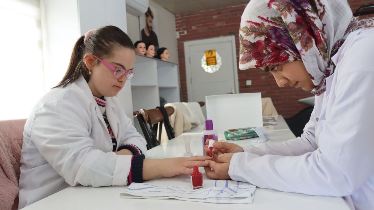 Sümer Özel Eğitim Meslek Okulu'nda eğitim gören özel gereksinimli öğrenciler, güzellik, saç bakım hizmetleri, yiyecek, içecek hizmetleri, mobilya ve iç mekan tasarımı ile el sanatları atölyelerinde uygulamalı eğitim alıyor.