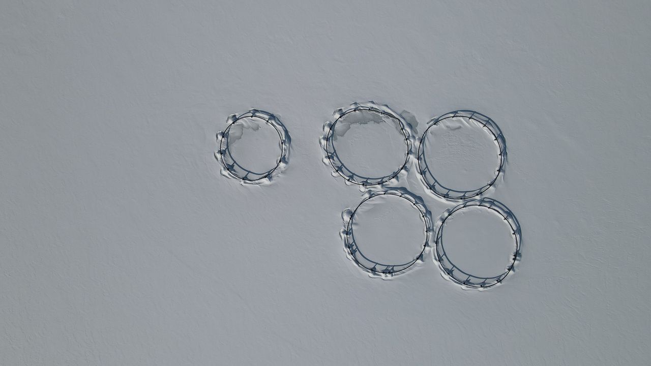 Kar ve buzla kaplanan baraj dronla görüntülendi.