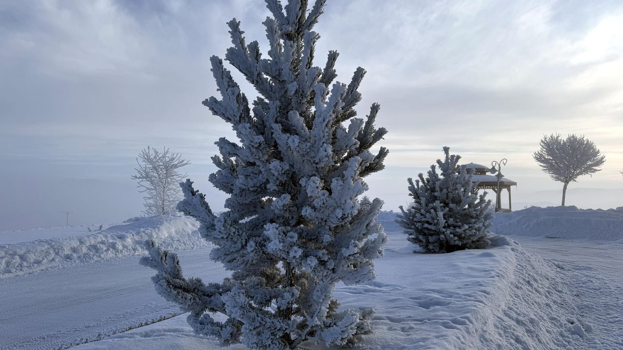 Hava sıcaklığının sıfırın altında 20 dereceye düştüğü kentte bitkiler, ağaçlar kırağıyla kaplandı.