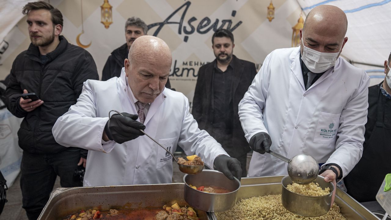Büyükşehir Belediye Başkanı Mehmet Sekmen, Narmanlı Cami önünde kurulan aşevi çadırındaki sıcak yemek dağıtım programına katıldı.