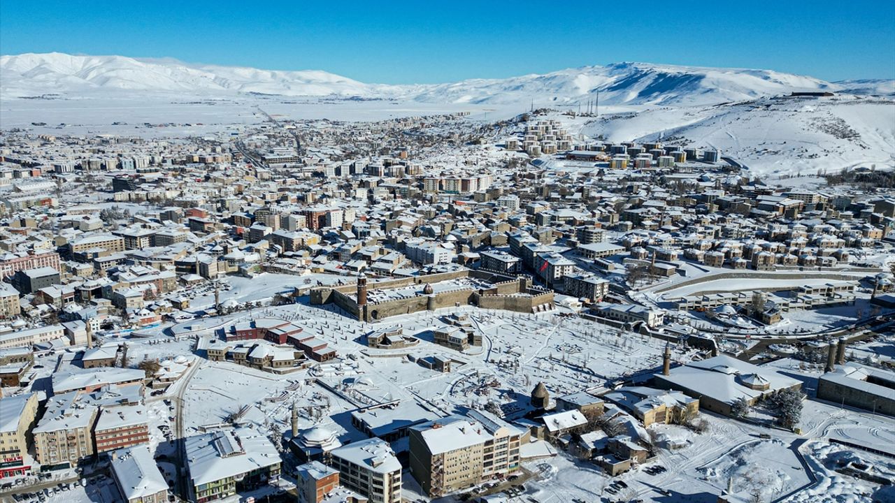 Ağrı'da da aralıklarla etkili olan kar, il merkezini beyaza bürüdü.