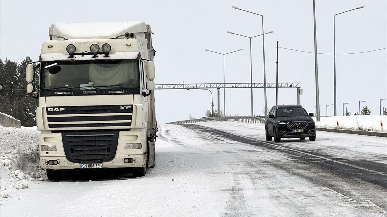 Bazı tırlar, Ardahan-Çamlıçatak kara yolunda bekledi.