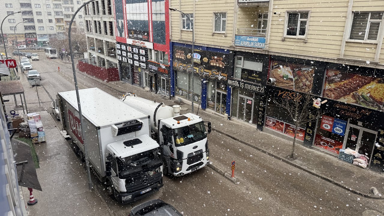 Kışın uzun ve çetin geçtiği Erzurum'da sabah saatlerinde kar yağdı.