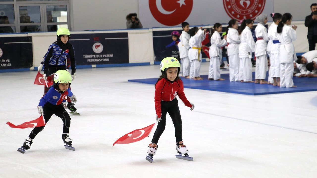Palandöken Buz Pateni Salonu'nda düzenlenen açılış, saygı duruşunda bulunulması ve İstiklal Marşı'nın okunmasıyla başladı.