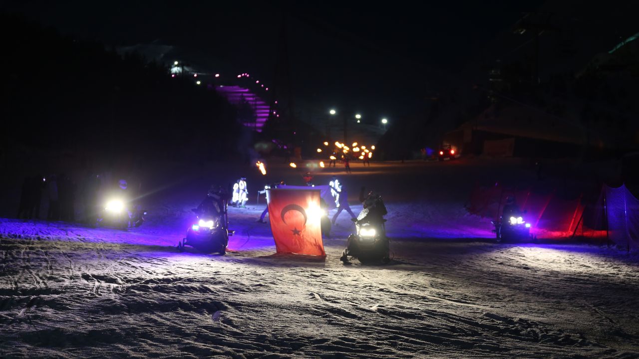 Programda, Jandarma Arama Kurtarma (JAK) ile ışıklı kayak senkronize ekibi, kar motorları, LED'li kayakçı takımı ile meşaleli kayak ekipleri, gösteri yaptı.