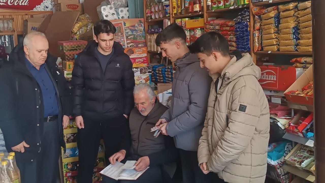 Liseden iki öğretmen koordinesindeki bir grup öğrenci, Osmanlı'dan günümüze kadar gelen 'zimem defteri' uygulamasıyla bakkallara borçlarını ödeyemeyen ihtiyaç sahibi vatandaşları tespit etti.