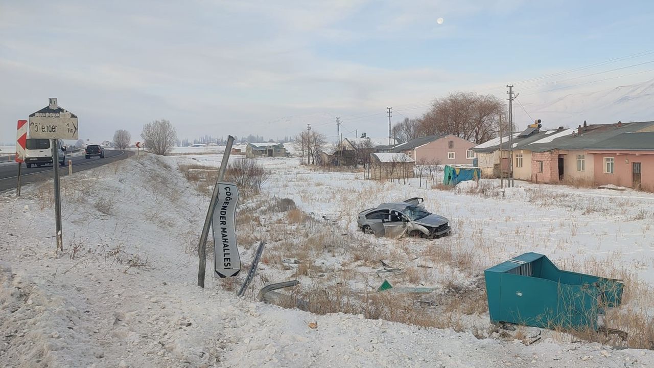 Rıdvan Ç'nin (46) kullandığı 65 AP 855 plakalı otomobil, Erzurum-Ağrı kara yolunun Çöğender Mahallesi girişinde şarampole devrildi.