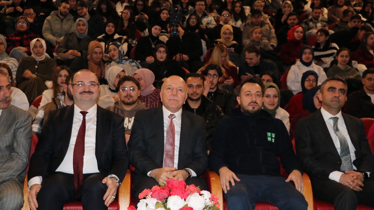 Atatürk Üniversitesi 15 Temmuz Milli İrade Salonu'nda moderatörlüğünü Atatürk Üniversitesi Rektörü Prof. Dr. Ahmet Hacımüftüoğlu'nun yaptığı konferans, saygı duruşunda bulunulması ve İstiklal Marşı'nın okunmasıyla başladı.