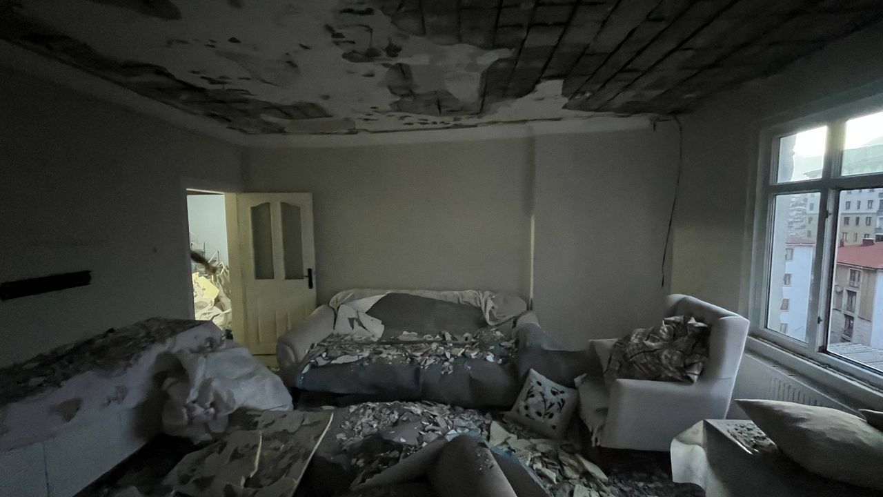 Beton parçalarının üzerine döküldüğü mobilya ve elektronik eşyaların bazılarında hasar oluştu.