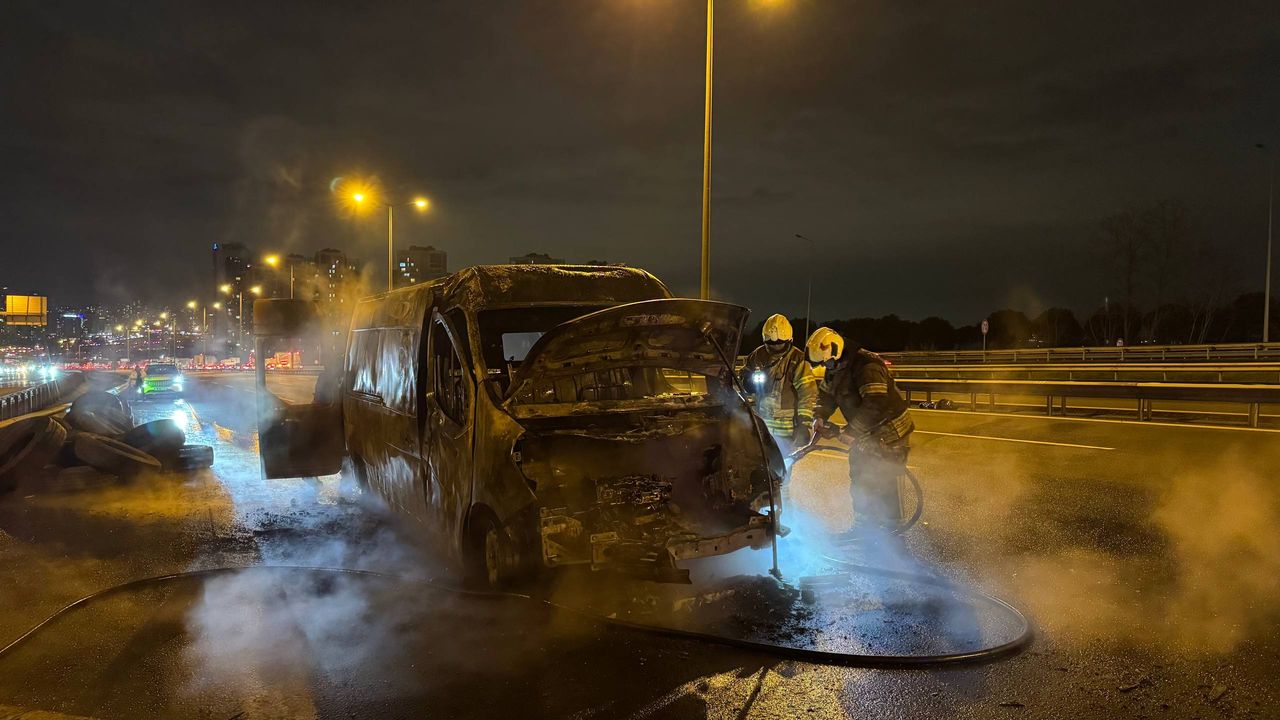 TEM Otoyolu Esenyurt mevkisi Edirne istikametinde seyreden, içinde otomobil lastiği bulunan M.Ç. idaresindeki 34 GC 9439 plakalı panelvan tipi minibüsün ön kısmında, henüz bilinmeyen nedenle yangın çıktı.